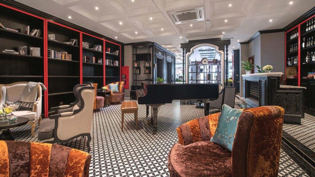 Nội thất trong khách sạn cổ điển thường là những món đồ được chế tác thủ công tỉ mỉ, mang phong cách hoàng gia với đường nét uốn lượn mềm mại, màu sắc trầm ấm như vàng đồng, nâu gỗ, kem, kết hợp cùng các điểm nhấn vàng son hoặc đỏ rượu. Ánh sáng thường được phân bổ nhẹ nhàng qua các đèn chùm pha lê lộng lẫy, đèn tường cổ điển, tạo nên một bầu không khí ấm cúng, sang trọng và đầy hoài niệm.